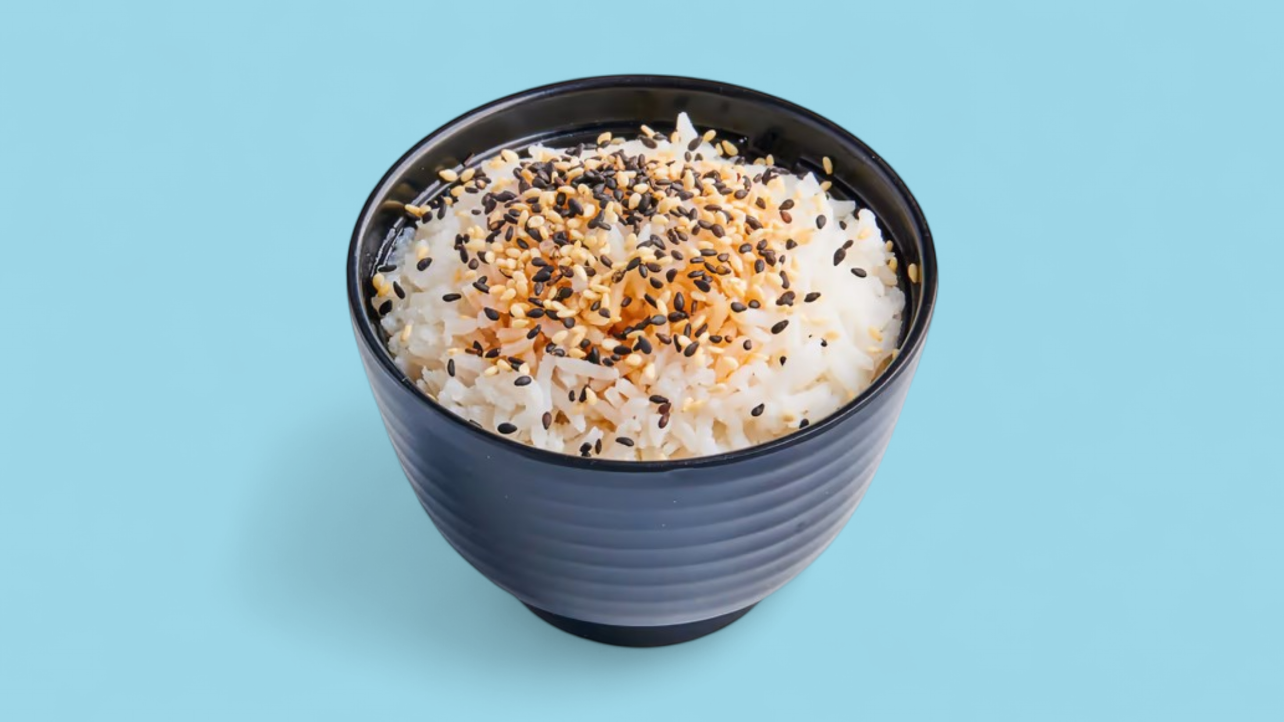 Hvit ris med sesamfrø og vårløk.